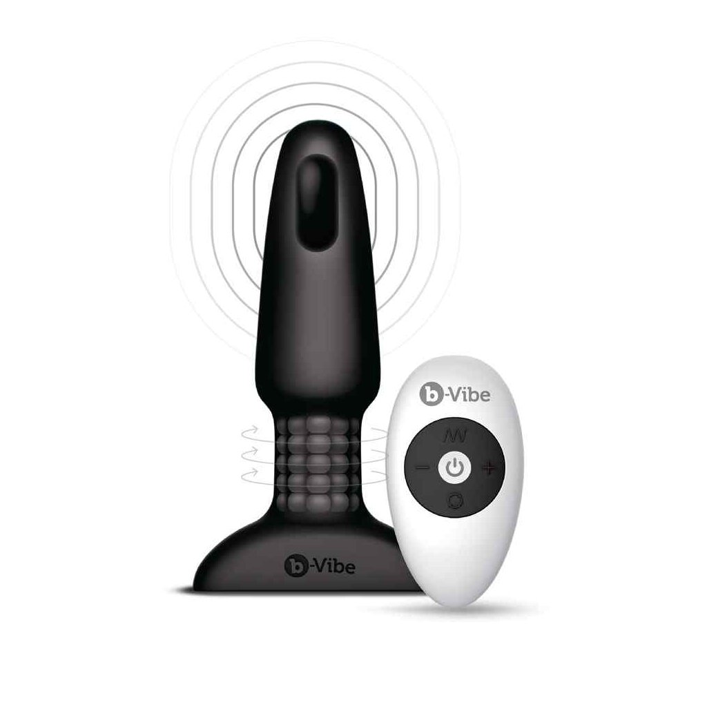 Vibriert und rotiert! Analplug mit Funk-Fernbedienung zum Einstellen der Vibration und der Rotationsperlen im Schaft, lässt sich aber auch direkt am Plug regulieren. 6 Vibrations-, 7 Rotationsmodi und 6 Geschwindigkeitsstufen sind miteinander kombinierbar. Mit Soft-Touch-Oberfläche und Standfuß. Inklusive Click 'n' Charge USB-Ladekabel und Hardcase zur Aufbewahrung. 15 cm lang, Einführtiefe 12,5 cm, max. Ø 4 cm. Reichweite Funk-Fernbedienung bis zu 9 m. Laufzeit ca. 1,5 Stunden, Ladezeit ca. 2 Stunden. Material: Silikon, ABS. Zur Anwendung wird ein wasserbasiertes Gleitgel empfohlen.