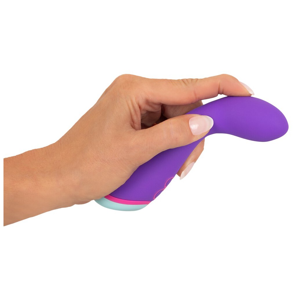 Kraftvoller g-spot vibrator von bunt. im trendigen Color-Blocking. Ideal gebogen und mit prallem, leicht flexiblen Vibro-Massagekopf (nicht nur) für die intensive vaginale G-Zonen-Stimulation. Dabei liegt der leichte Vibrator gut in der Hand - und gleitet mit seiner seidigen Soft Touch Textur wie von selbst.
