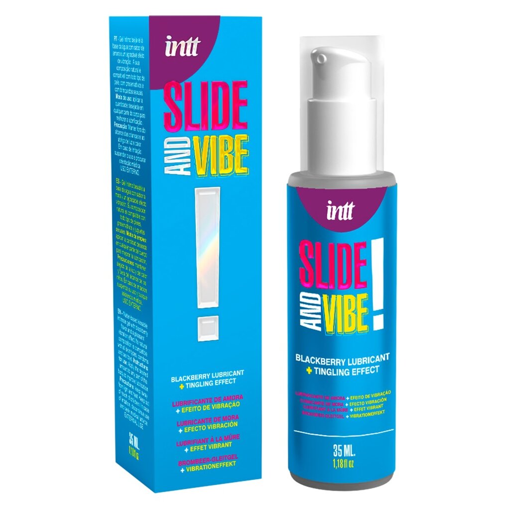 Blackberry Lubricant + Tingling Effect Slide and Vibe! by intt seduces with the irresistible aroma of fresh blackberries. The gel delivers an electrifying tingling sensation that awakens the senses and intensifies every touch.