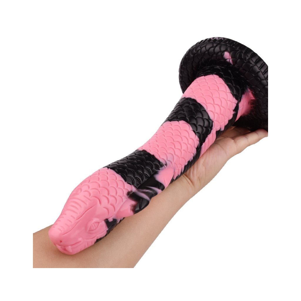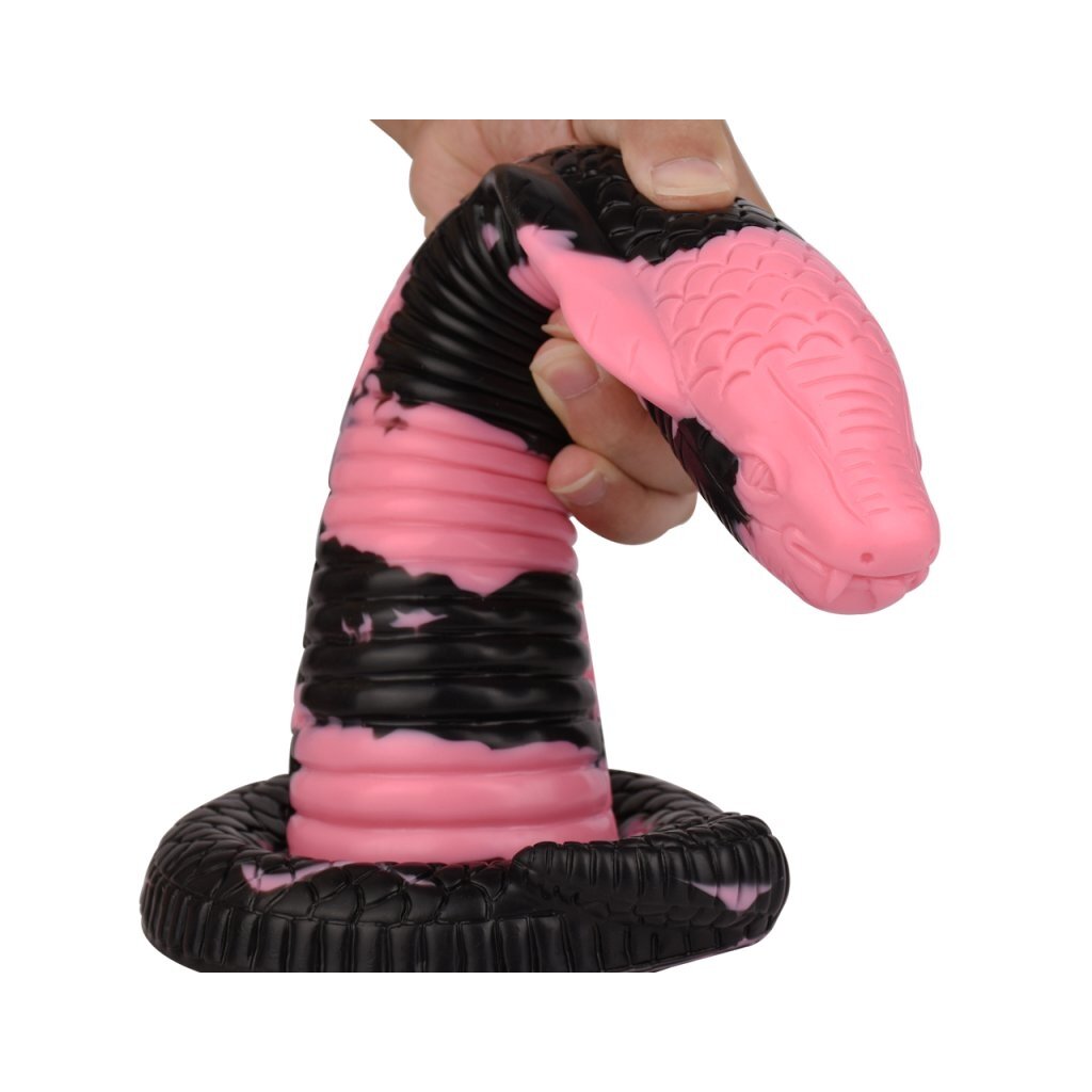 The Cobra Snake S dildo from Unicorny is an exciting sex toy in black and pink with a unique snake shape. The textured surface provides additional stimulation and intensifies the pleasure. With an insertable length of 18 cm and a maximum width of 5 cm, the dildo offers versatile possibilities for satisfying your needs. The suction cup base allows hands-free use and opens up new variations of play. Discover the versatility of the Cobra Snake S dildo and enjoy exciting moments full of pleasure and passion with Unicorny.